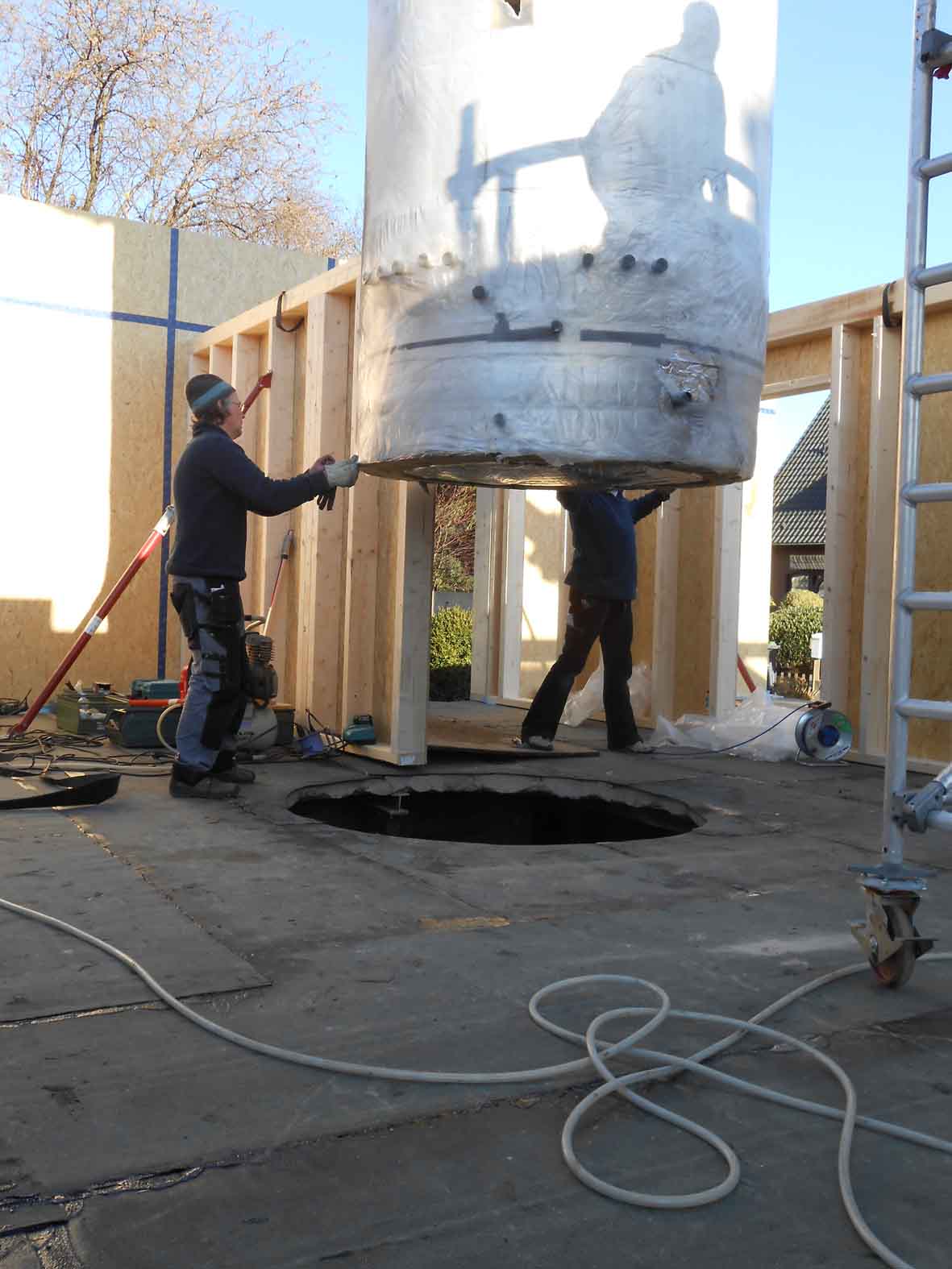 | Solaranlage | Flachkollektoren von SST Bruttokollektorfläche 30 m² Sonnenhaus-Pufferspeicher mit 6,5 m³ |
